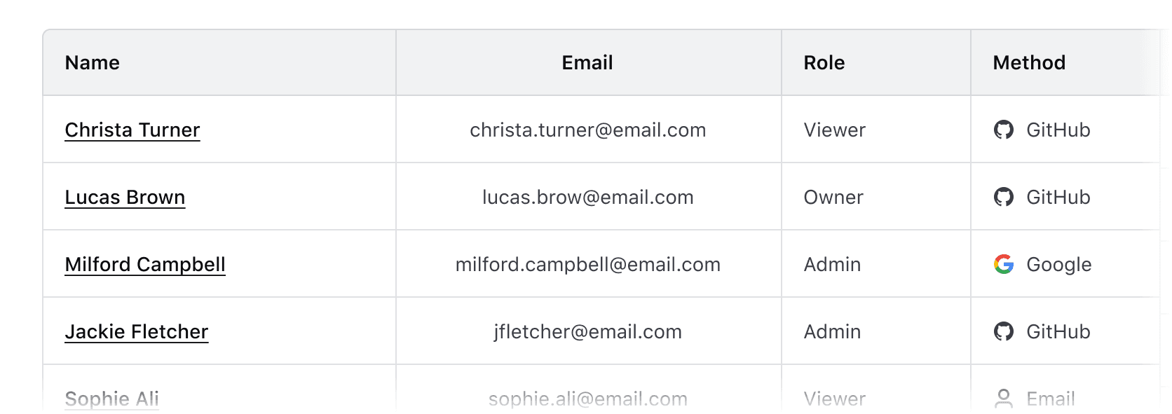 shortdensity. Use this only for text-heavy tables, as it can make them harder to scan. - For a smaller dataset, e.g., basic user data, consider using the