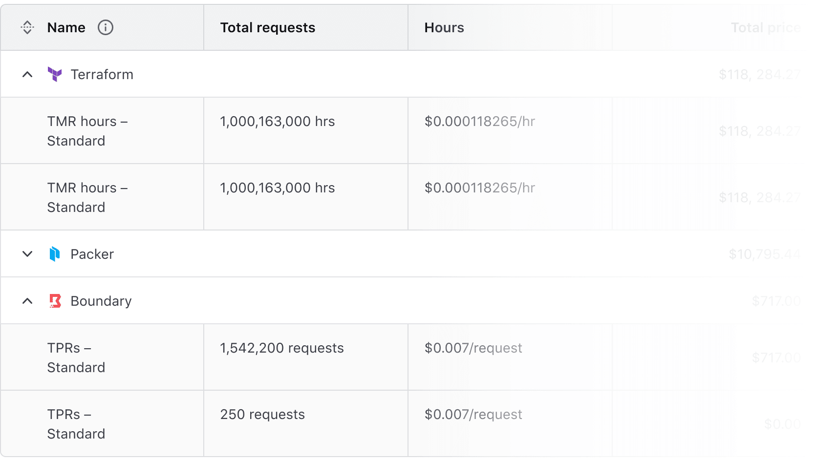 Expandable rows let users show or hide more content without navigating away from the table. The expanded content should align with the header labels, even if the parent row includes minimal data.